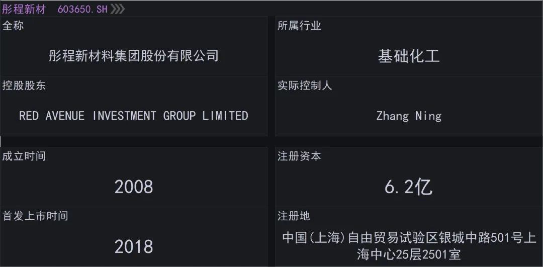 彤程新材全称叫做彤程新材料集团股份有限公司,注册地在上海市,股票2018年在上交所上市,公司的控股股东是RED AVENUE INVESTMENT GROUP LIMITED,实际控制人是Zhang Ning,组织形式属于外资企业,审计机构是安永华明会计师事务所。