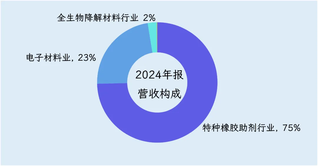 从收入结构来看,轮胎里那勺谁也绕不开的酚醛树脂是公司最大的收入来源。2024年这块卖了24.4亿元,占公司营收的75%,板块毛利率26%。橡胶本身粘不牢、不够硬,把树脂加进去才能压成轮胎。