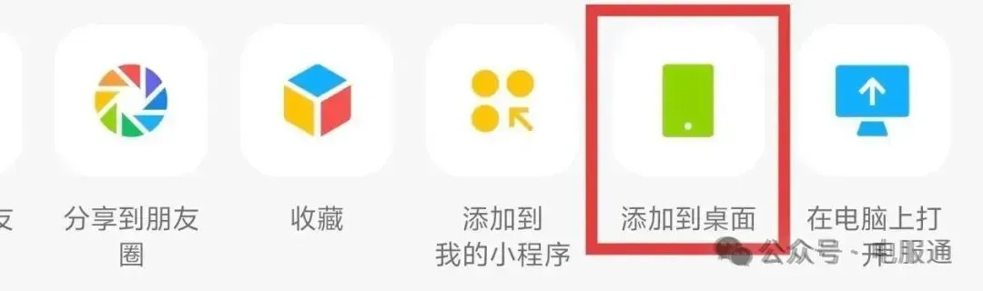 将电服通小程序添加到手机、电脑桌面,使用方便又快捷,如下:
