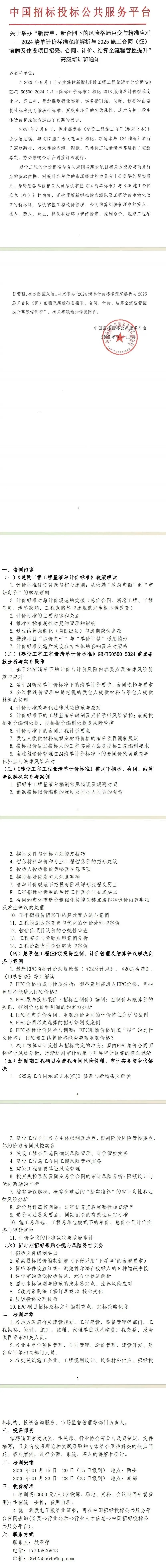 中国招标投标公共服务平台:“新清单、新合同下的风险格局巨变与清单计价标准深度解析与建设项目招采、合同、计价、结算全流程管控提升”