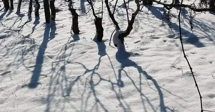 随着天气的转冷,葡萄藤生长季结束,开始进入休眠。休眠时,新枝逐渐木质化,成为“母蔓”(Cane)。在这期间,如果气温过低,可能会导致芽眼死亡,在一些极端情况下,葡萄植株自身都会被冻死。