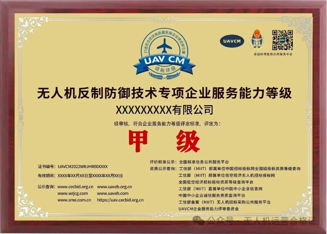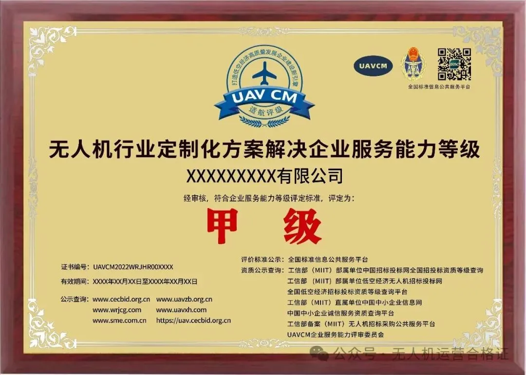 为什么要选择UAVCM 系列适航评级评价的无人机企业服务能力评级。全网唯一可以在工信体系:官方平台:全国低空装备及相关服务招投标资质等级查询平台https://uav.cecbid.org.cn/公示的评价证书!公信力,企业形象,逼格拉满!展示企业细分领域的经营成就。提升公信力,谈判筹码。