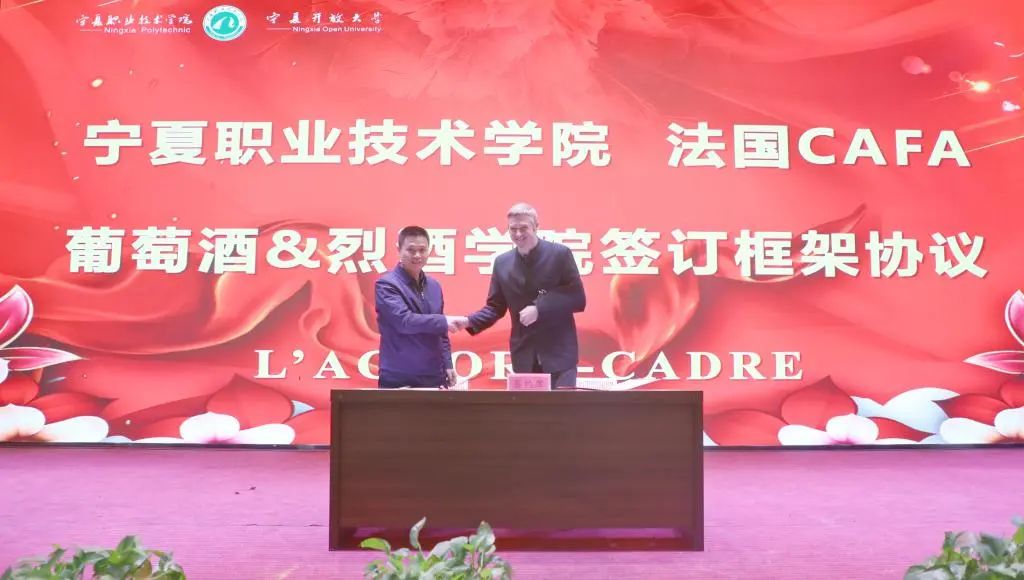 陈志勇代表学校与法国CAFA葡萄酒&烈酒学院代表Lionel SH签订了框架协议。