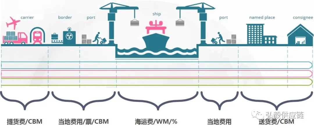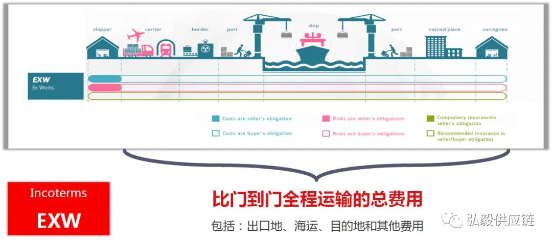 在明确了比较的对象以后,接下来就是确认比较的范围。如果买方使用EXW条款的话,比价的范围就是门到门全程运输的总费用。