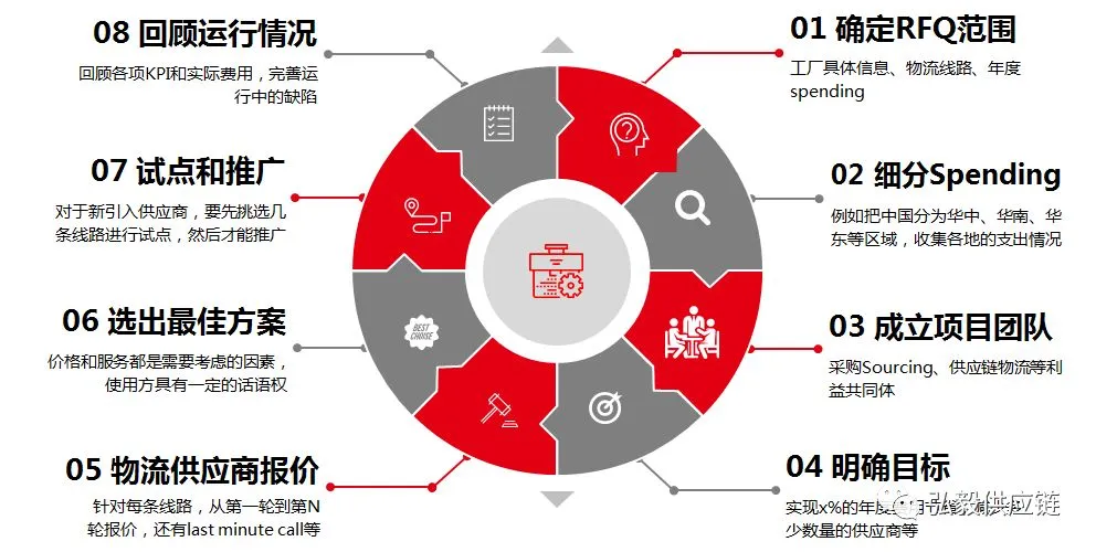 项目团队一般由间接物料采购(Indirect Sourcing)牵头,再加上供应链团队中负责运输操作业务的负责人组成核心小组,还需要各个工厂的采购和物流提供相应的支持。最最重要的是要得到工厂的总经理们和总部高层领导的力挺。