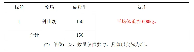 本次招标牛只以包场进行招标销售;本次招标标段:2026年1月钟山场成母牛;各客户可以根据需求进行单个标的物报价。