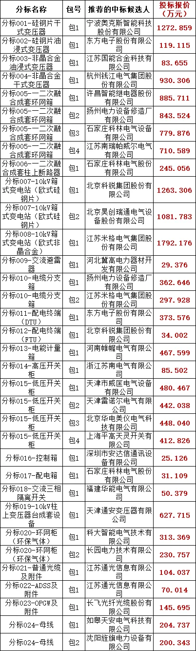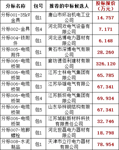 国网天津市电力公司2025年原集体企业第八次物资类协议库存招标采购评标工作已经结束,依据《中华人民共和国招标投标法实施条例》、《招标公告和公示信息发布管理办法》对中标候选人公示的规定,现将评标委员会推荐的中标候选人予以公示,公示期3日。投标人或者其他利害关系人若对评标结果有异议的,请在中标候选人公示期间以书面扫描件形式(发送电子邮件)提出。