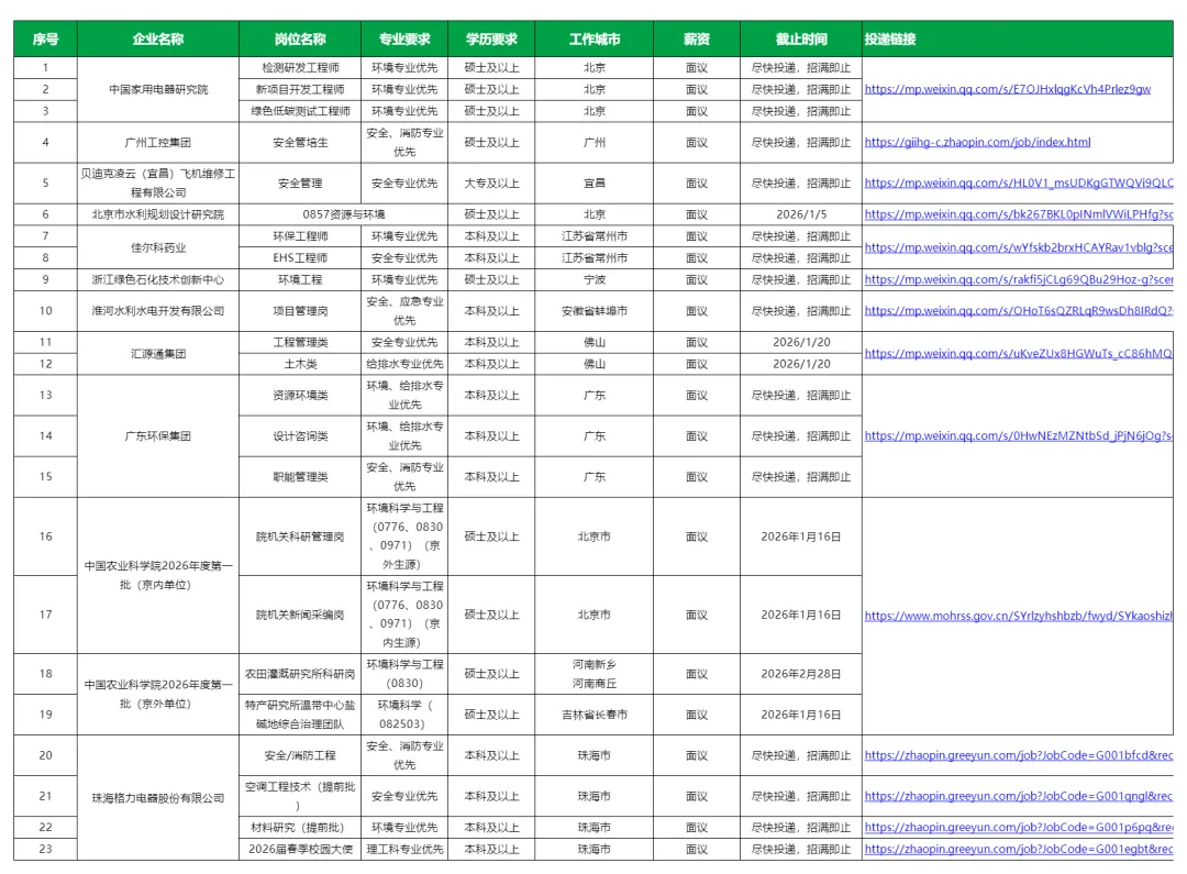 我们的26届EHS春招岗位合集适用专业有:安全类、环境类、消防类、给排水类、应急类这几类专业。
