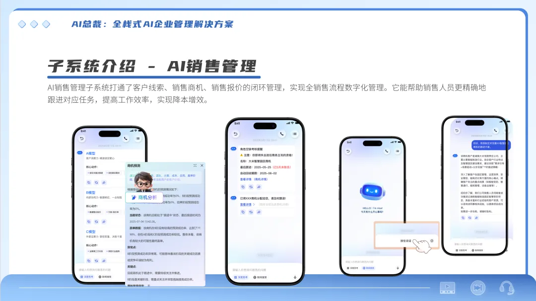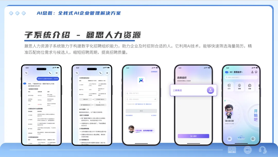 生成式AI的核心竞争力,在于“多场景适配 + 高交互体验 + 强效率提升”的综合能力 —— 它并非单一功能工具,而是集信息查询、内容生成、技能提升与场景解决方案于一体的智能伙伴,这一核心优势在企业级服务领域尤为突出。针对企业管理中普遍存在的流程割裂、数据孤岛、决策滞后等痛点,“鼐思人工智能大企管模型” 精准承接生成式AI的技术内核,以 “场景深耕、全域适配”为核心,推出了“AI总裁”,全面覆盖人力资源、销售管理、后勤管理等企业全链路场景,真正实现“一体系适配多元业态”。该模型既延续了生成式AI多场景适配、高效赋能的核心价值,又聚焦企业管理的专属需求深化落地,深刻彰显“AI赋能管理、智能驱动产业”的核心理念,为企业数字化转型提供兼具实用性与灵活性的优质实践方案。