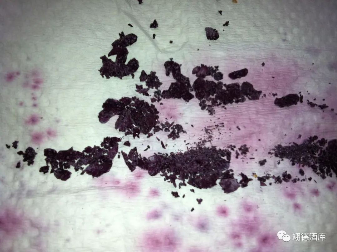 葡萄酒中的沉淀物主要包括两种,即酒石和酵母沉淀。酒石是结晶状的物质,由酒中的酒石酸钾和葡萄酒中的钾离子形成的。酵母沉淀则是指在酸度和温度条件下,葡萄酒中的酵母菌死亡后形成的沉淀物。这些沉淀物在开瓶倒酒时可能会出现在酒瓶底部或酒液表面。
