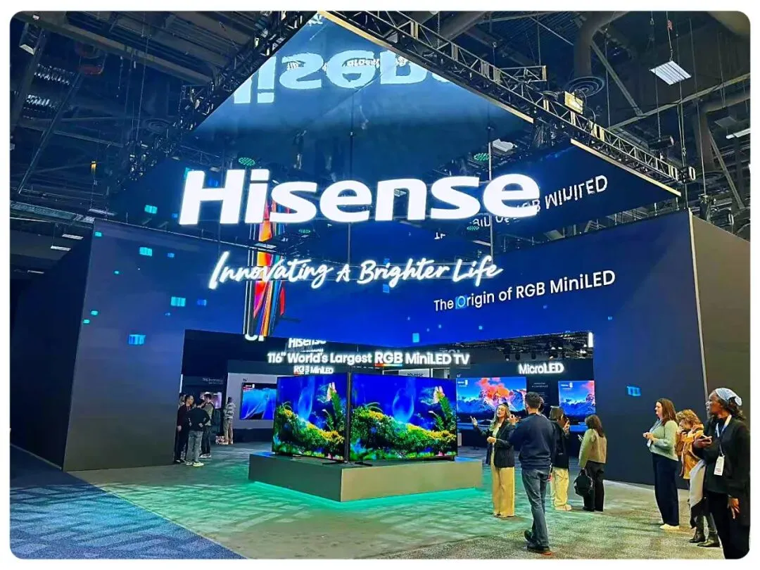 海信展区则以第二代 RGB-Mini LED evo 技术确立行业领跑地位,该技术创新性新增 “天青色” 第四种背光色彩,形成独特的 “玲珑 4 芯架构”,色域首次达到 110% BT.2020,较 QD-OLED 高出 18%。搭载的自研 “信芯 H7” 画质芯片凭借强大 AI 算力,实现百万亿色级精准控色,让消费级产品具备专业制作级色彩表现。现场发布的 116 吋 RGB-Mini LED 电视 UX 已斩获 CES 荣誉奖,截至展会第二日,已收到全球 20 个国家的订单意向。数据显示,海信当前占据全球近九成的 RGB-Mini LED 电视销量,随着技术普及,奥维睿沃预测 2026 年该品类全球出货量将激增 25 倍至 50 万台,中国企业正主导这一新兴赛道的全球标准制定。
