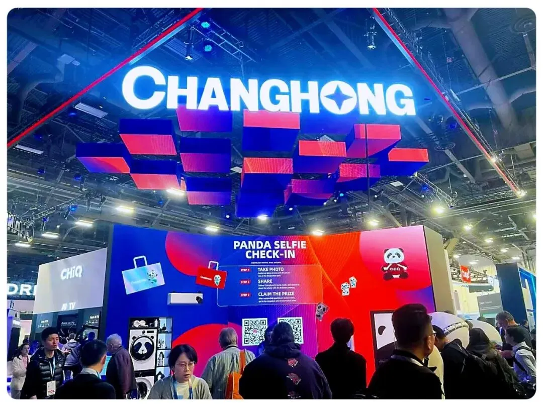 在LVCC 主馆南翼的中国企业集聚区,惠科展出的 8K AI 超高清电视凭借自研 AI 芯片实现画质实时增强,针对不同地区的观影习惯提供个性化参数配置,首日便收获东南亚、南美市场的批量订单。长虹则聚焦 AI + 健康显示赛道,其新款激光电视搭载 AI 护眼监测系统,可智能调节光线强度与色温,全球市场份额已连续三个季度位列第一,展会现场推出的世界杯定制款产品成为球迷关注焦点。