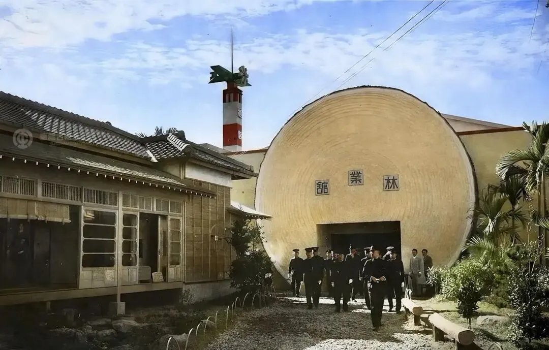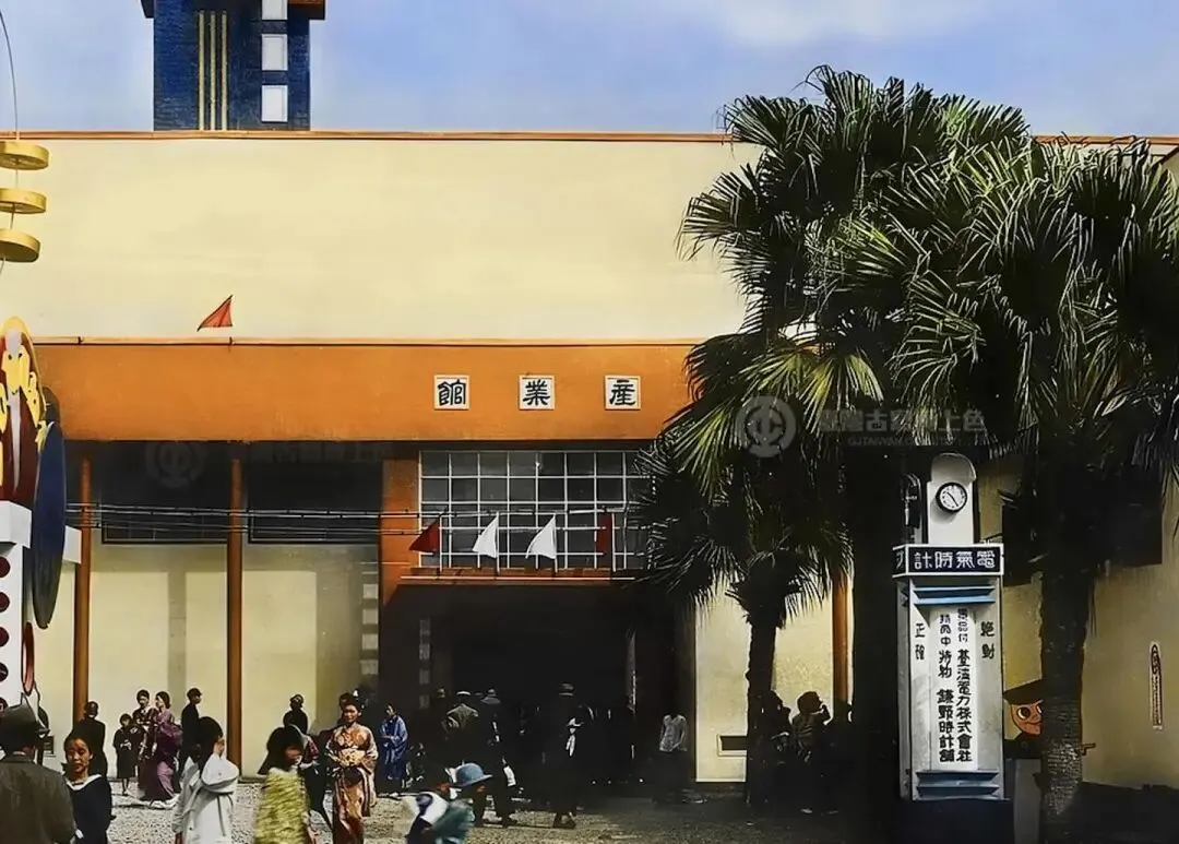 公会堂后侧为L型产业馆,产业馆主要是总督府殖产局的工商农渔畜产业成果,民间产业团体及商家也有租赁摊位参与。