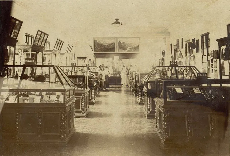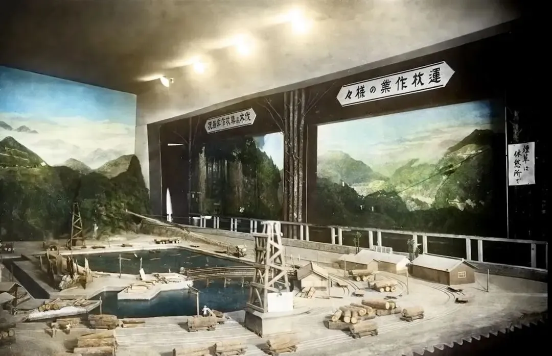 过了陆桥、就是府县馆(福冈、爱知单设两个展馆),除福爱两县外,其余各府县均在此设展,展示本府县特产,并以低于市价的优惠价售卖。并借此机会推广观光。