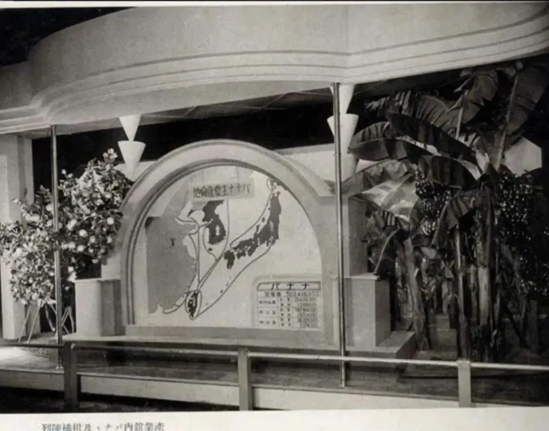 香蕉与柑橘展区,香蕉为日据台湾名产,在战后仍然收到日本欢迎,后逐渐没落。日据时期,台中州香蕉最为出名,当时日本人吃香蕉要剥皮后用刀叉切片食用,直接剥皮吃被视为野蛮人。二战期间,蔗糖受到管控,台湾香蕉干成为日本人解馋甜味的安慰剂。