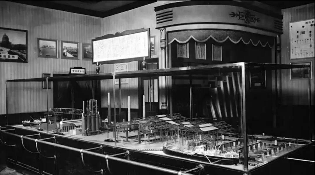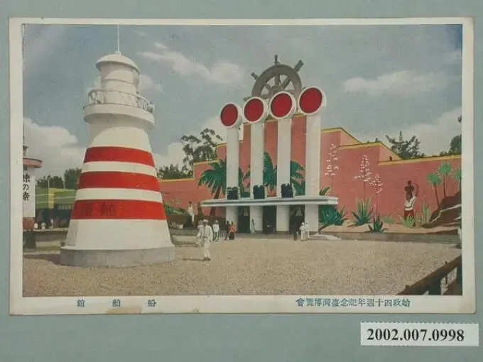 船舶馆,由大阪商船、近海邮船、大连汽船、递信部海事课共同设置展览馆,展示航海交通的发展及各会社的航行路线模型。
