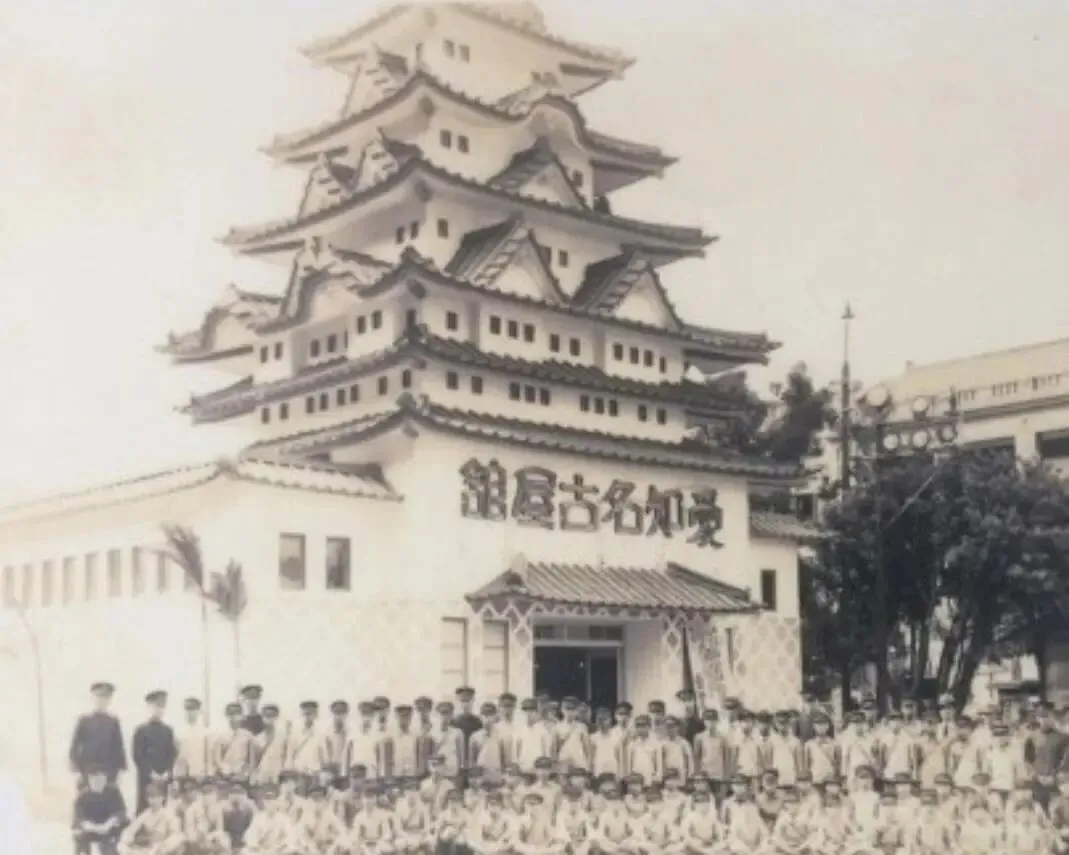 名古屋馆,展出爱知县关系出品,爱知馆的建筑是以名古屋城天守阁为造型,日据时台湾和爱知县的商业往来相当密切,馆内的特产品卖店生意兴隆。此外爱知县对这次的台湾博览会相当重视,因为爱知县预定于1937年举办大型博览会,希望借此机会观摩、学习。
