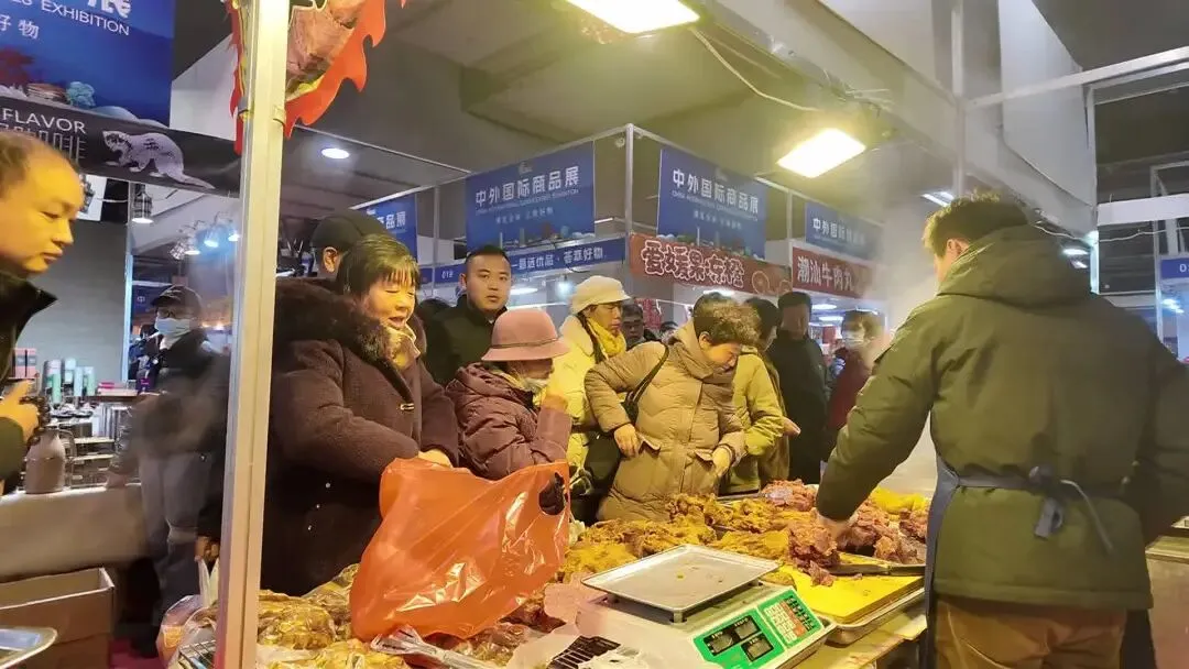 很高兴来到济宁,大家在这里能一站式购齐2026年的年货。而且现场可以免费品尝,先尝后买,好吃再购买。