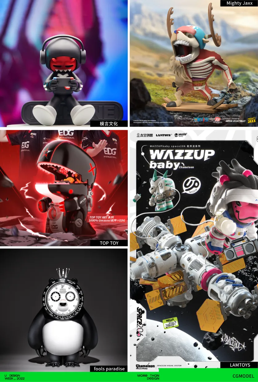 最后中国知名的全品类一站式CG数字内容版权交易平台,垂直细分领域的领先者——CG模型网也带来了超多潮流炫酷的潮玩作品。NAUMI、奥依、云默、麓小西、以悠、张渔、疯景......各种主题的潮玩齐上阵 ,快来现场一睹为快吧!