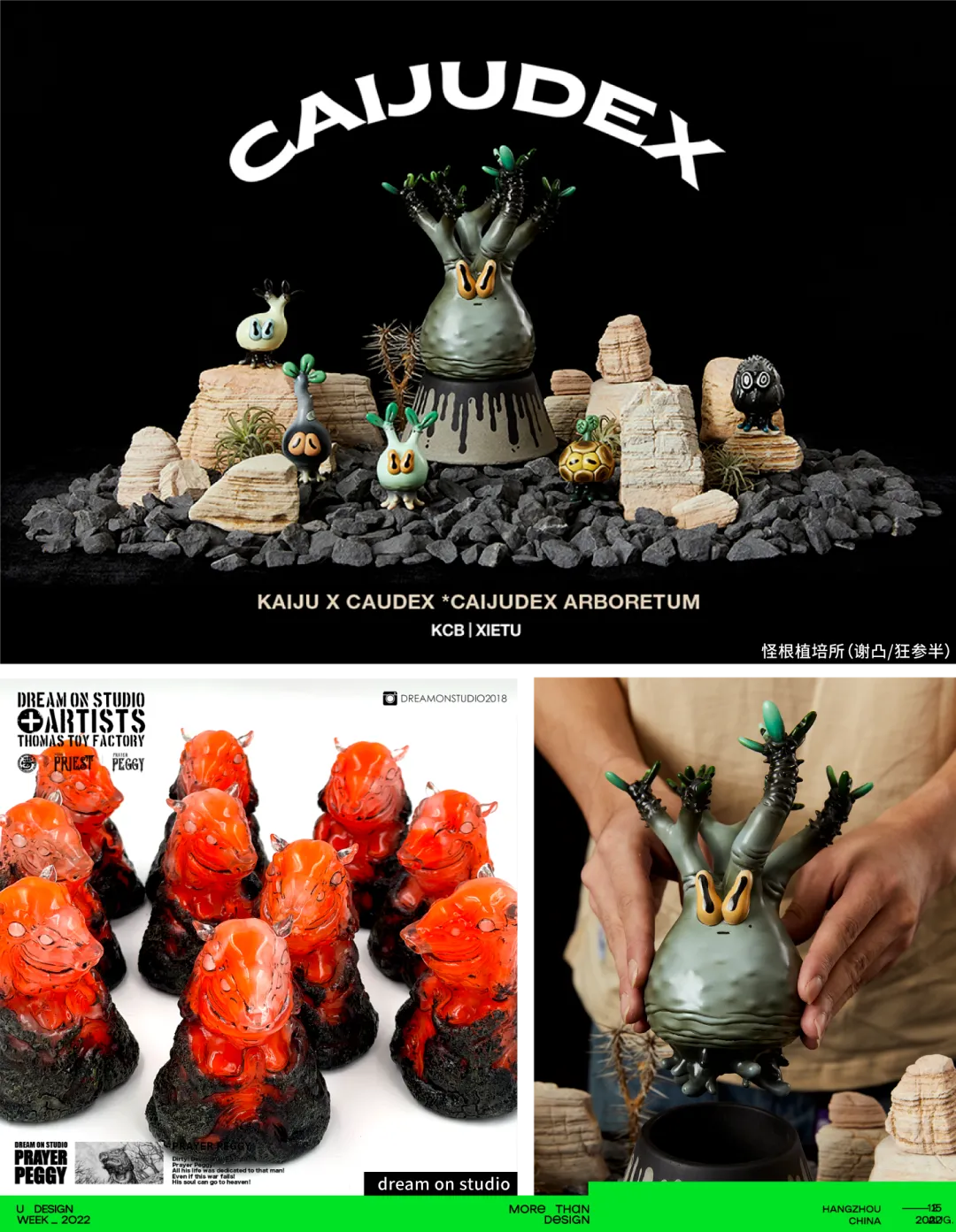 之后还有Sofabi类潮玩同样值得期待!怪根植培所(谢凸/狂参半)、dream on studio等人带来潮玩新作,让我们一起看看植物被“拟人化”后到底是多了一分怪异,还是多一分可爱吧!