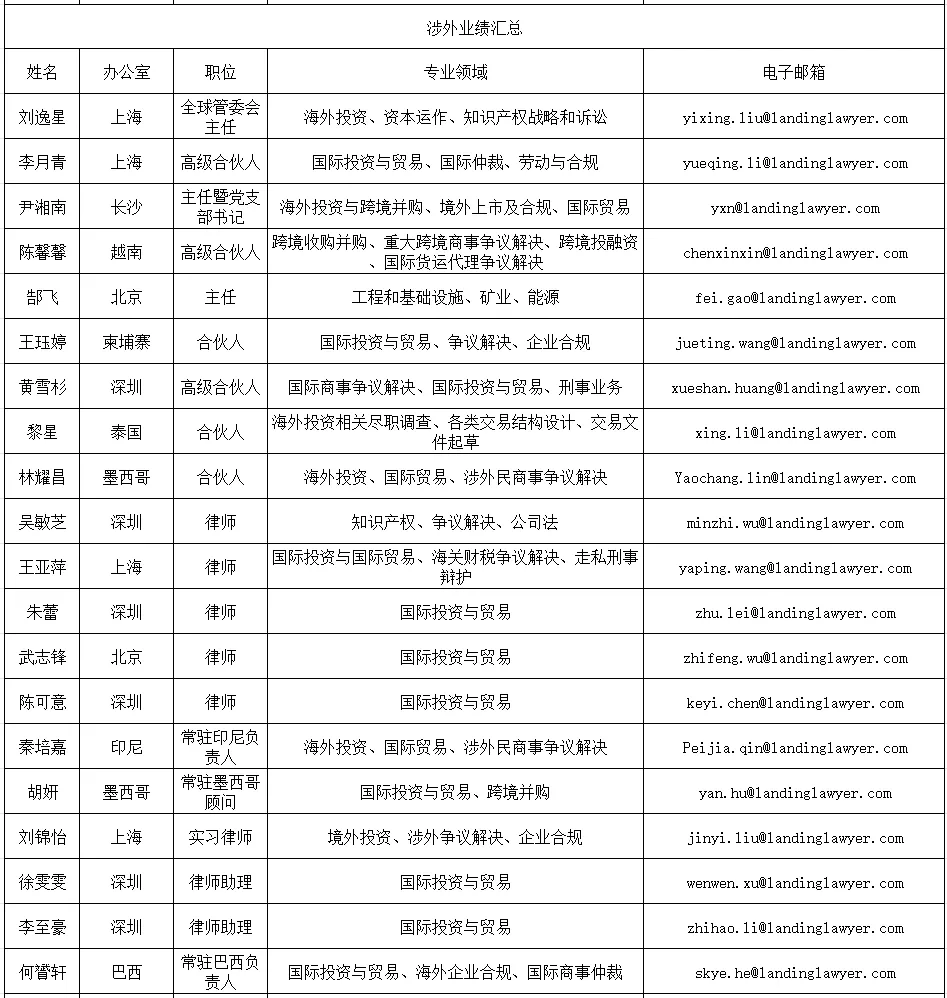 兰迪律师事务所在跨境法律服务方面实力突出,兰迪总部及国内三十余家分所超过160名合伙人、律师或助理具备涉外法律服务能力,可以在跨境投资、国际贸易、涉外商事诉讼、国际商事仲裁等领域向客户提供优质的法律服务。其中大部分专业人员拥有海外留学、培训或工作的经验,极具国际化视野,工作语言涵盖英语、日语、韩语、德语、西班牙语等,与诸多的外国律所建立了紧密的合作关系。兰迪服务的客户来自全球数十个国家,不乏世界500强企业或中国500强企业。兰迪涉外律师的专业能力、实务经验以及勤勉敬业的态度得到了客户的高度认可,正在业内赢得越来越多的声誉。