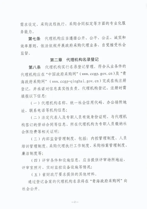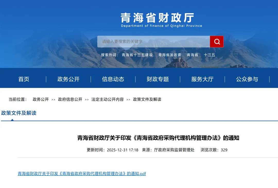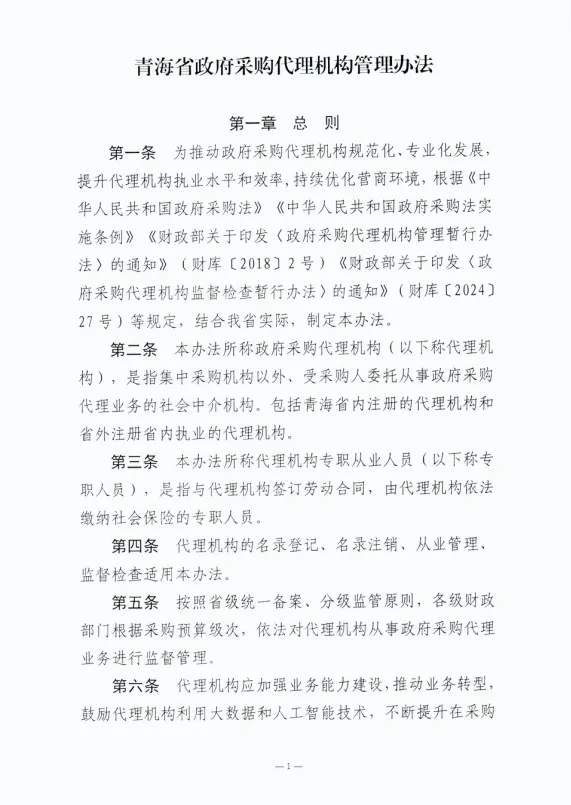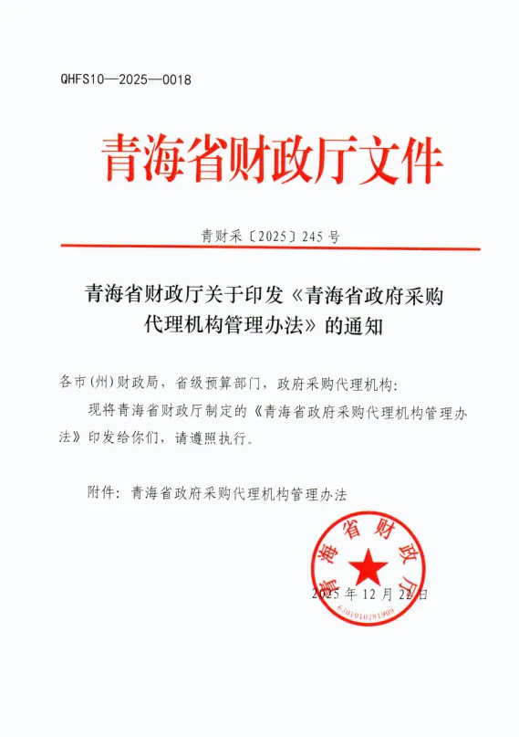 青海省财政厅印发《青海省政府采购代理机构管理办法》