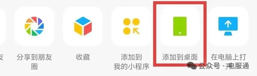 将电服通小程序添加到手机、电脑桌面,使用方便又快捷,如下: