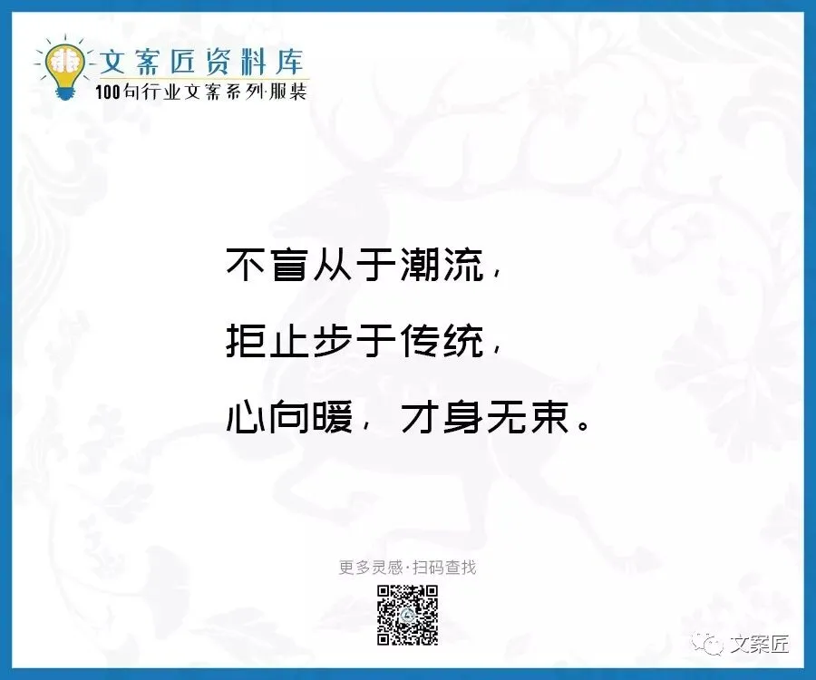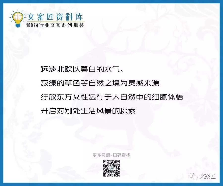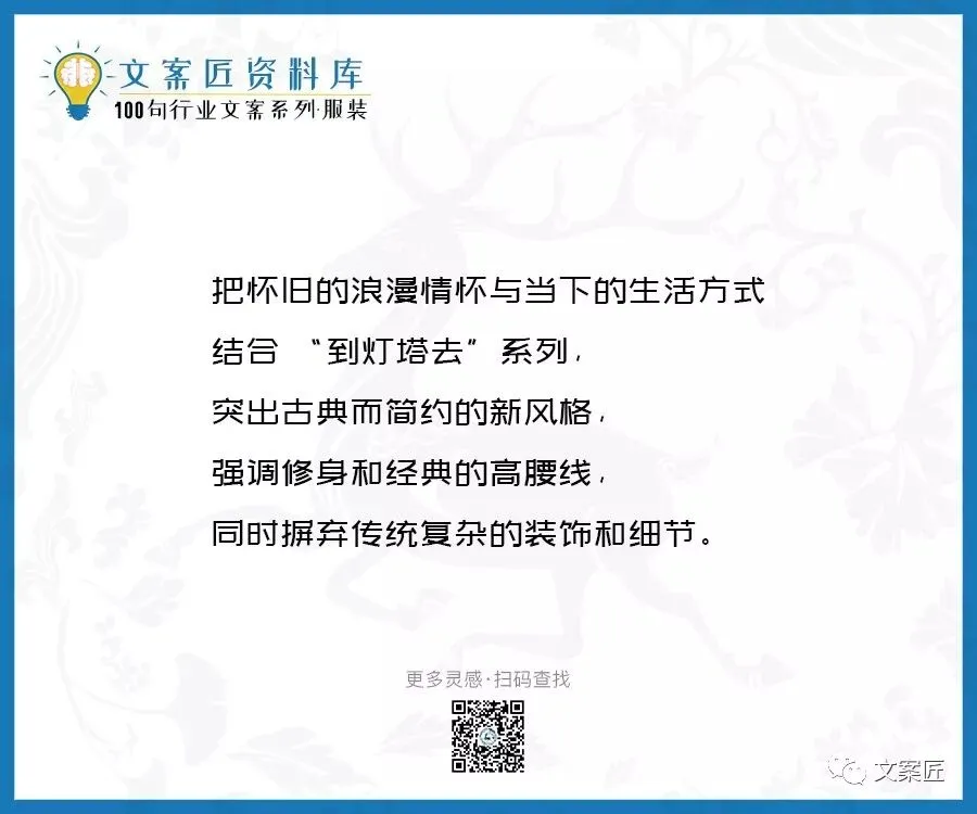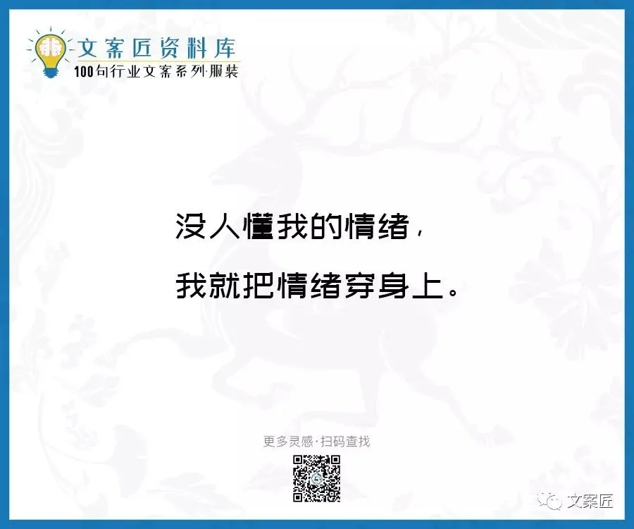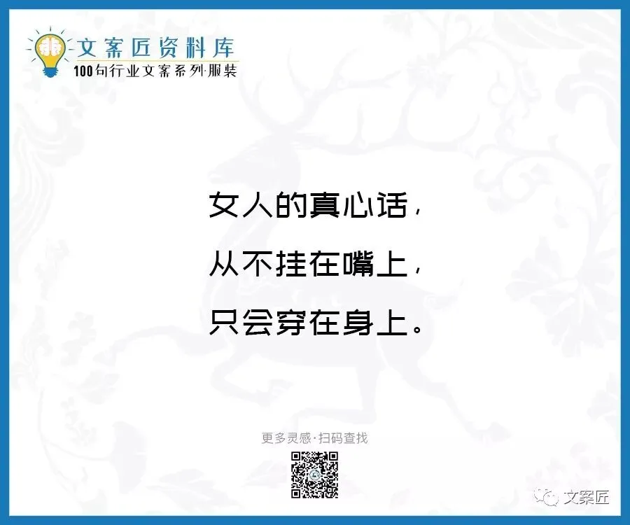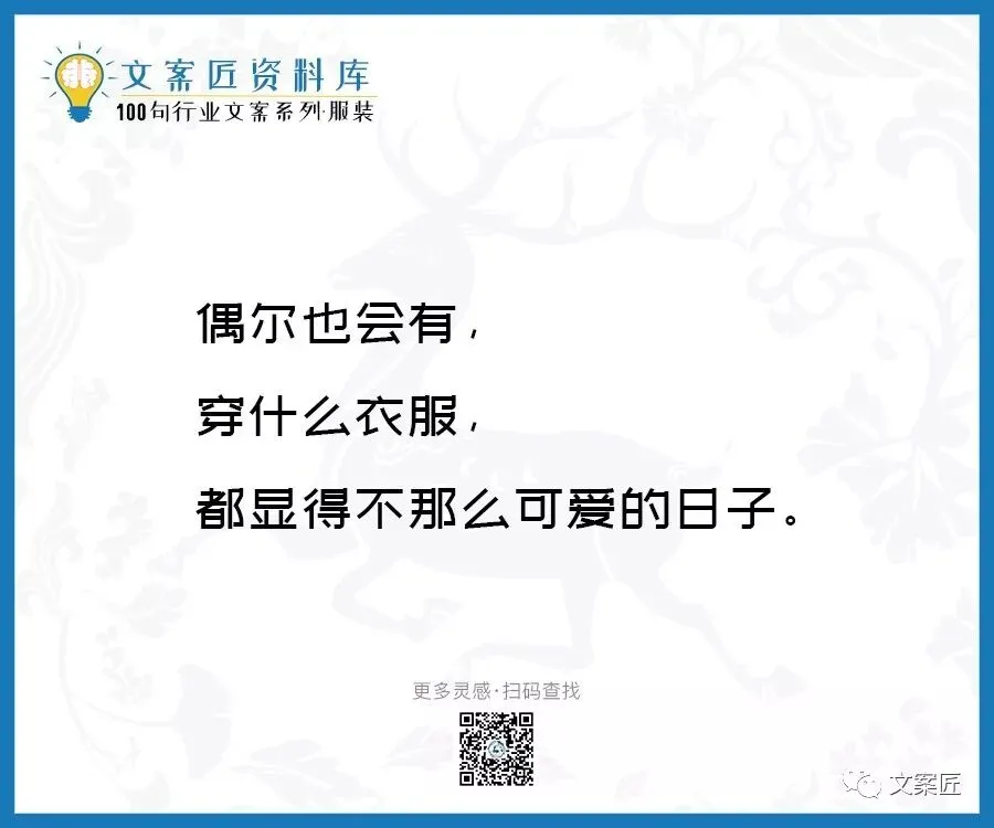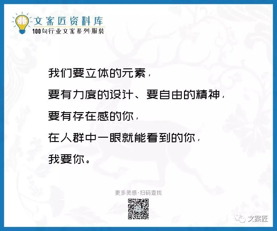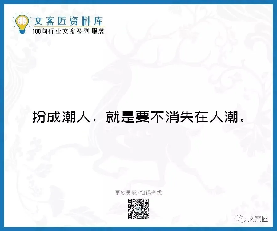 今天分享100句来自各个品牌的服装行业好文案,收藏这一篇就够了。
