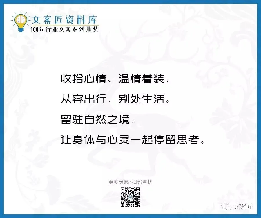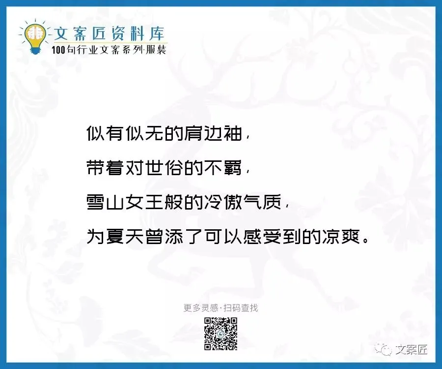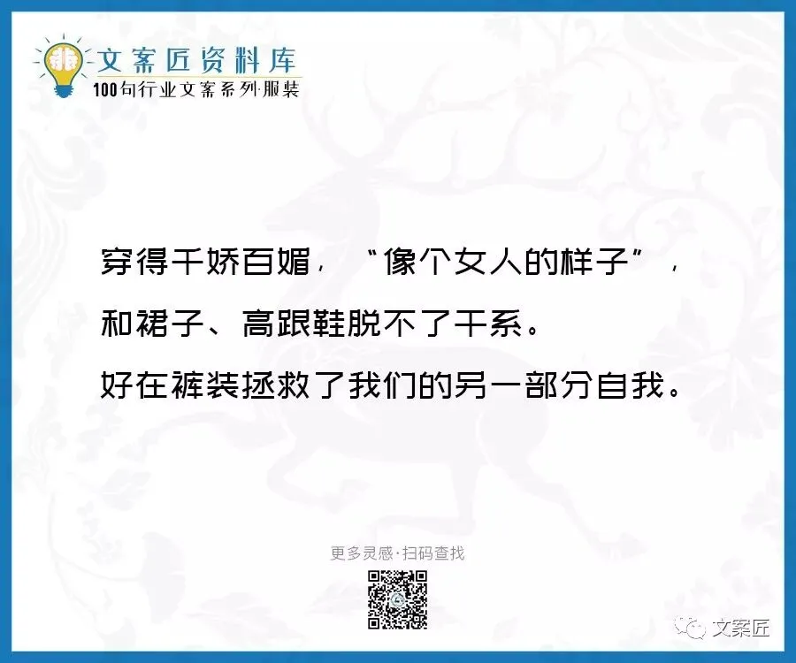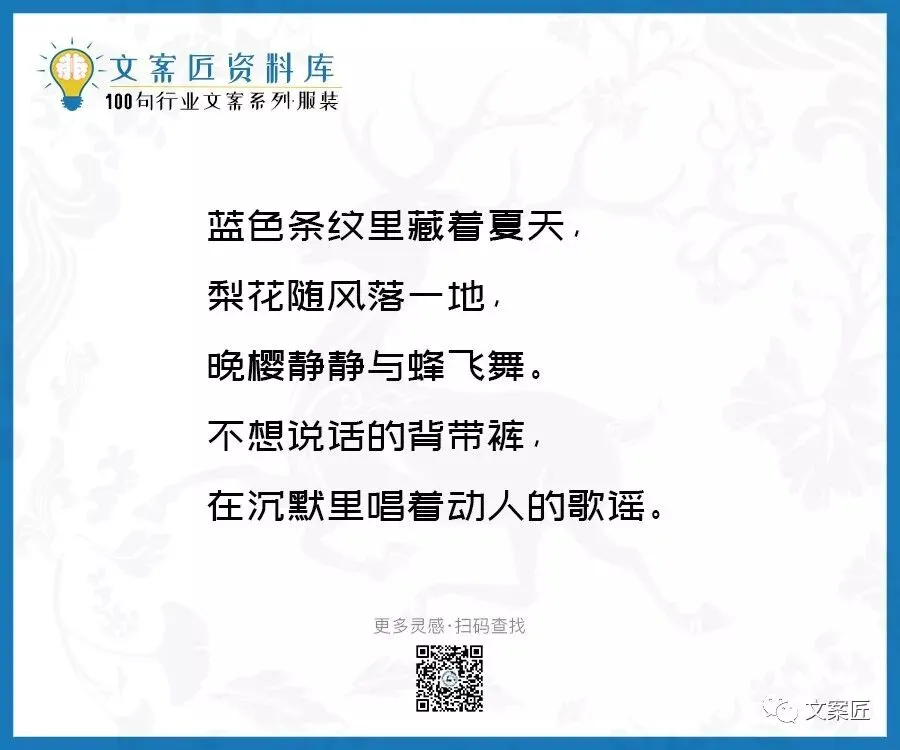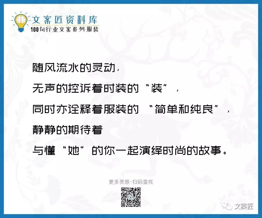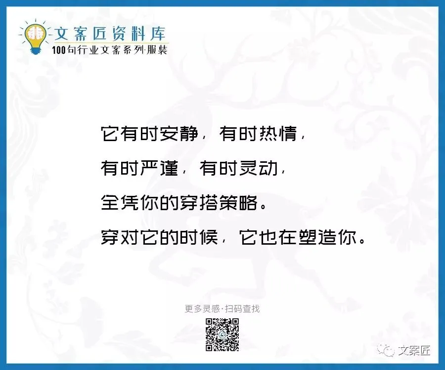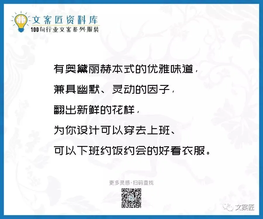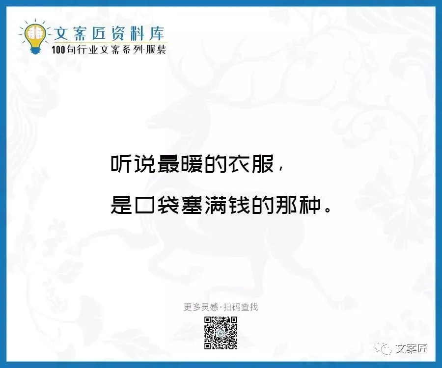今天分享100句来自各个品牌的服装行业好文案,收藏这一篇就够了。