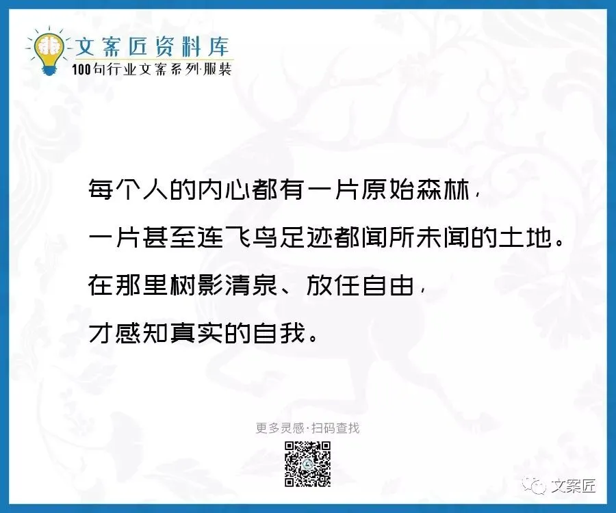 39、每个人的内心都有一片原始森林 一片甚至连飞鸟足迹都闻所未闻的土地 在那里树影清泉 放任自由 才感知真实的自我。