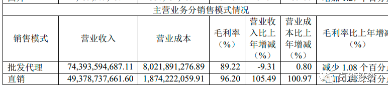 年报,最有价值的图,就是此图,是企业转型的依据,批发代理,销售下降80亿,但是直销,增加了250亿,直销相当于翻倍增长,所以未来茅台的业绩,看点就是直销的增长情况,只要直销下滑,那么营收是要下滑的。