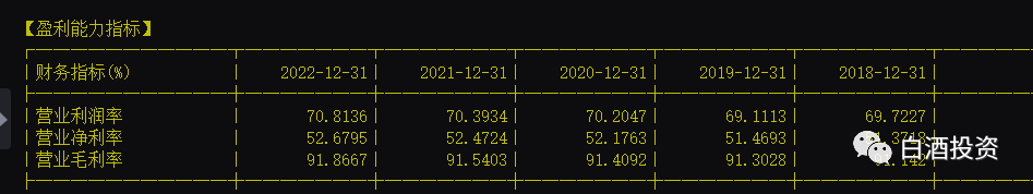大家看贵州茅台最近五年净利率,51%以上,这个净利率,真的非常高,大家去找,这个水平的净利率,A股就没几家。