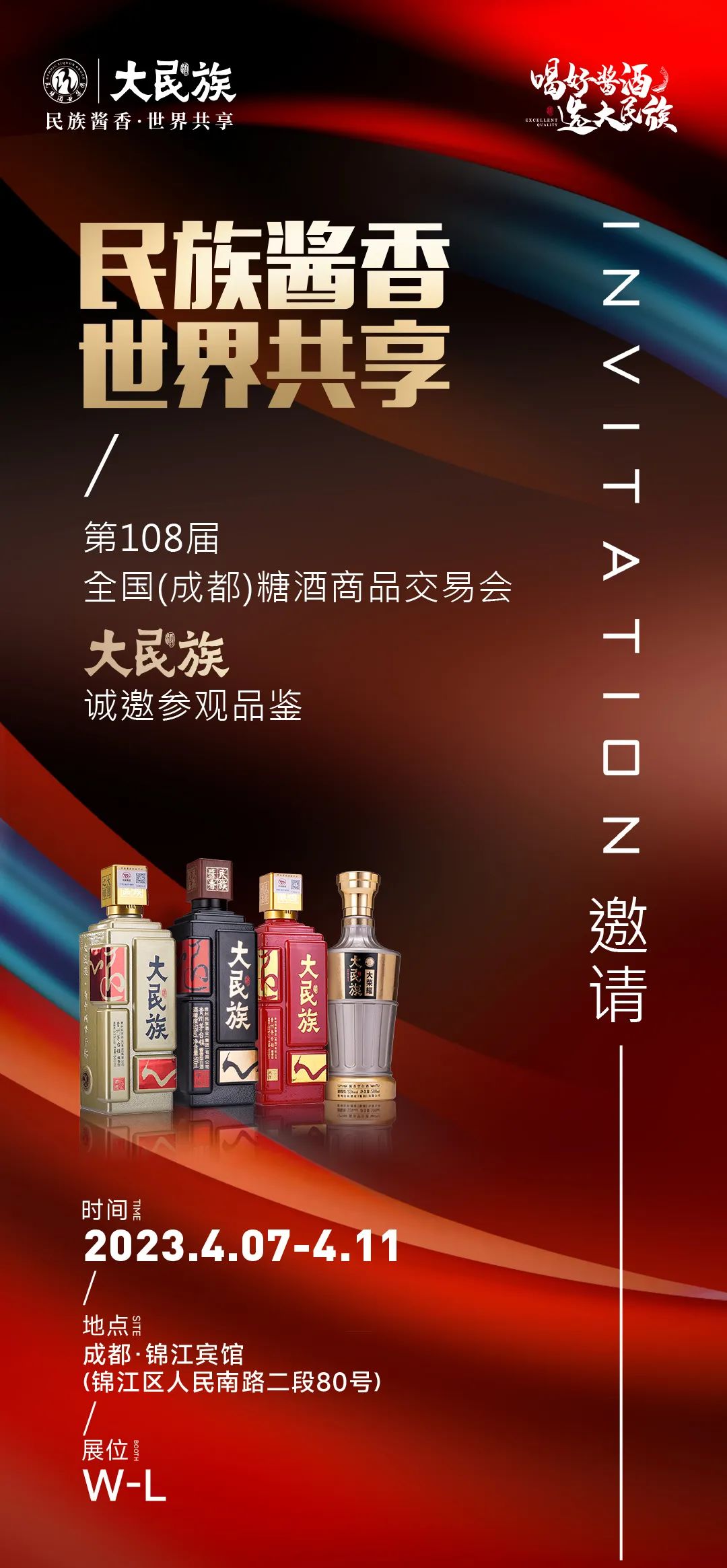 4月7日至11日,大民族诚邀您相聚2023春季全国(成都)糖酒会!乘春风之势,品酱酒醇香,谋酱酒商机!