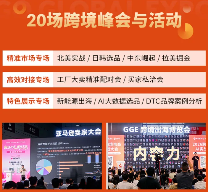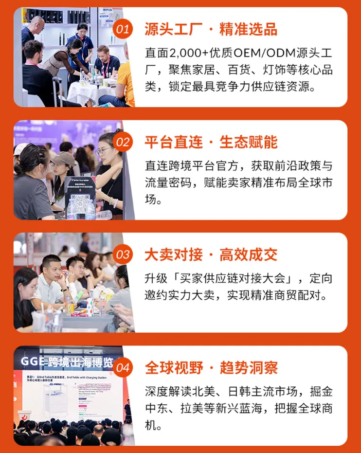 GGE跨境出海博览会暨第11届OEM/ODM源头工厂展将于2026年4月25日至28日在深圳国际会展中心(宝安)举办。本届展会以26万平方米规模汇聚超过4500家源头工厂,全面覆盖电子家电、潮流时尚等全品类跨境商品,并以“实效对接”为核心理念,通过贯通工厂、卖家、平台及服务商全产业链,致力构建一个选品精准、撮合高效的中国制造出海枢纽,成为链接全球跨境生态、推动机遇共享与未来共创的关键平台。