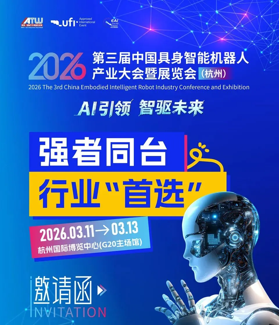 聚杭州,论智能,创未来!2026年3月11-13日,杭州国际博览中心,第三届中国具身智能机器人产业大会暨展览会诚邀共襄盛举,以技术融合与生态协同为翼,助力产业实现规模化跨越!