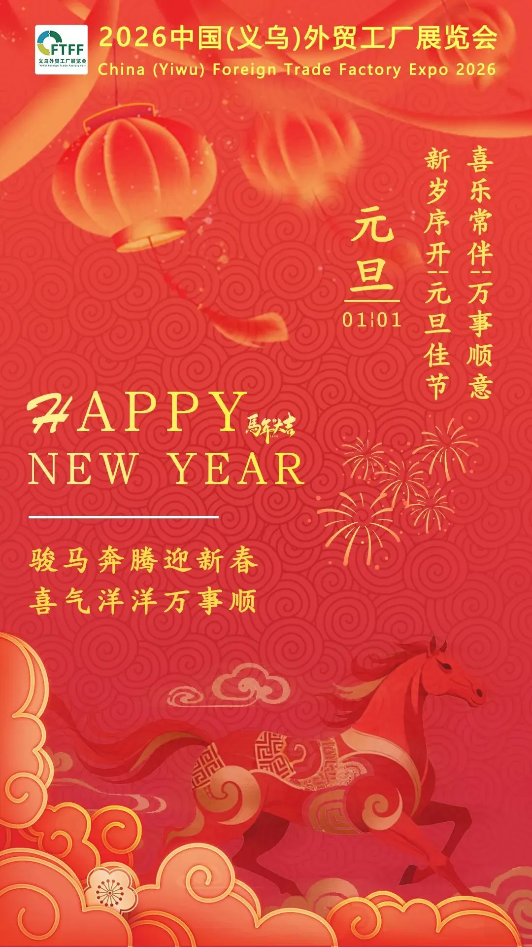 元旦将至,万象更新。义乌外贸工厂展组委会谨向所有关心与支持博览会及外贸跨境贸易发展的朋友们,致以诚挚的感谢与祝福:愿新年胜旧年,前程共奔赴。