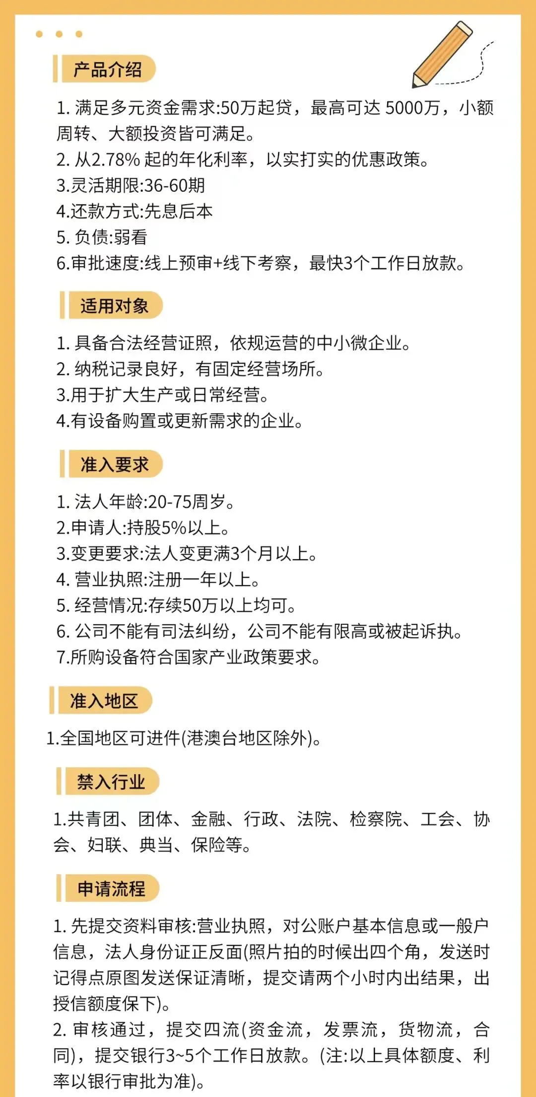 不管你是做制造业、服务业、电商、餐饮、物流,还是科技创新、批发零售,只要是合法经营、没有不良记录,都能申请这三家银行的信用经营贷。只有高污染、非法集资这类违规行业被限制,其余行业通通敞开大门!