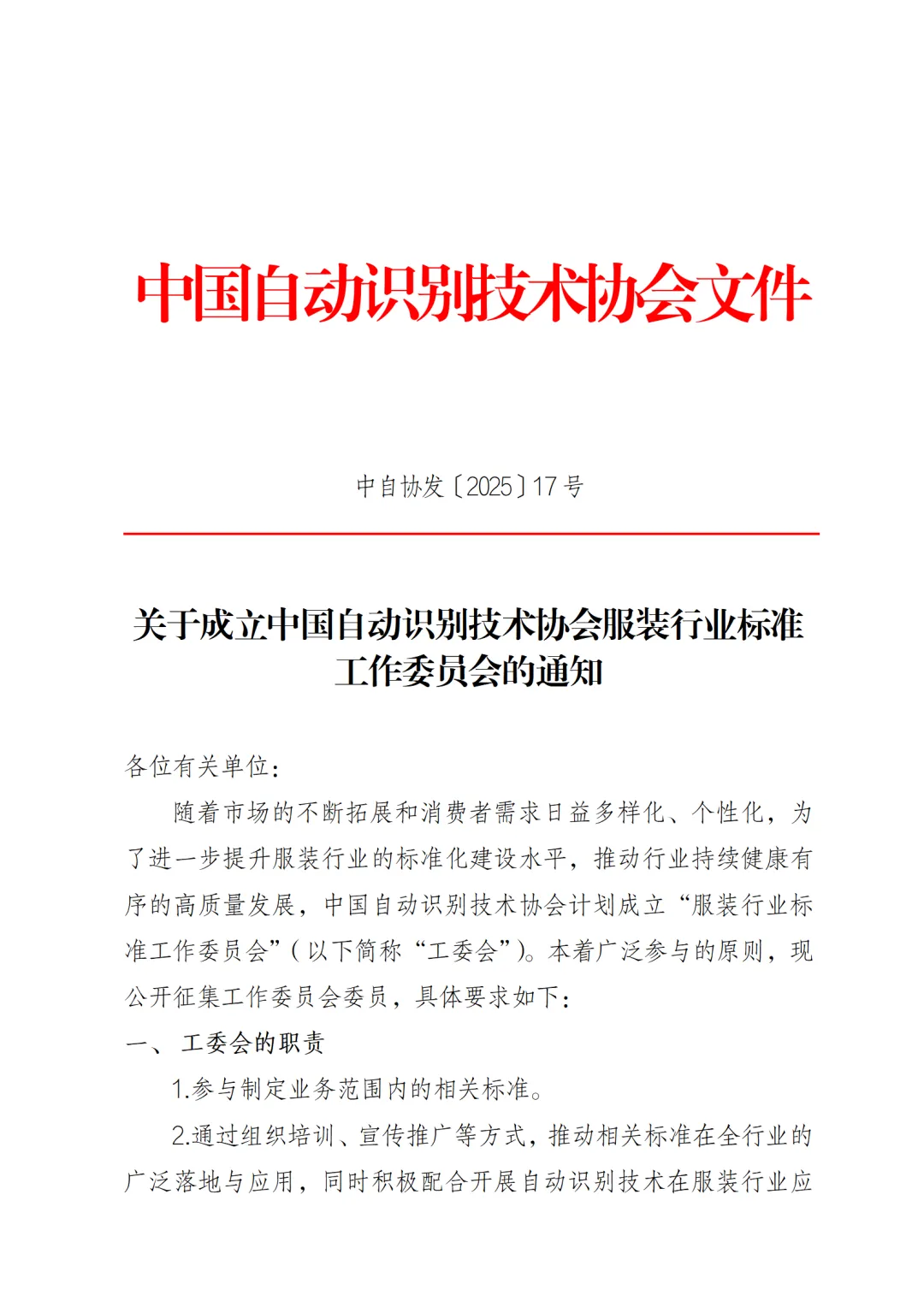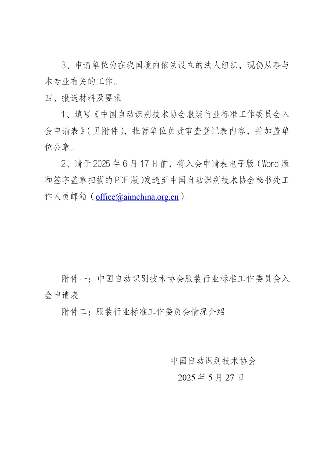 1.中国自动识别技术协会服装行业标准工作委员会入会申请表