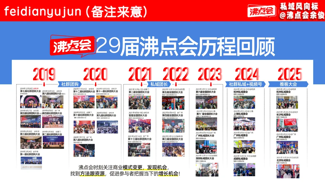 自2015年起,沸点会已成功举办 29届私域大会+展会,成为私域从业者每年必参的行业标杆活动。第30届,将在 3月13杭州私域电商展会 上再创高峰!