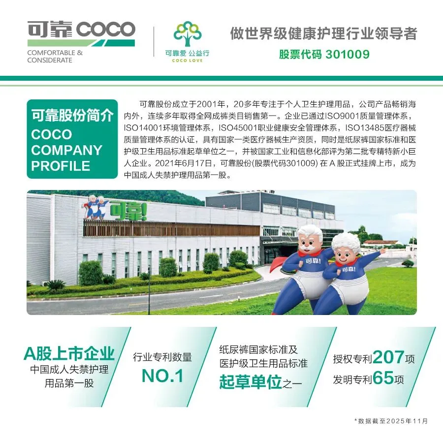 自2017年起,可靠股份便前瞻性布局科研体系,投资建成行业首个专注于成人失禁护理的研发基地,并与国际知名材料科技企业开展深度合作,致力于推动产品向高端化、个性化、智能化方向升级。通过持续的研发投入及与中国制浆造纸研究院、多所高校的“产学研用”协同,公司已构建起覆盖全产业链的创新能力。截至当前,可靠股份已主导或参与制定国家标准、团体标准等30余项,承担国家及省级重大科研项目20余项,发明专利超60项,为行业技术标准化与产业化进程持续注入创新动能,集中彰显示范引领作用。