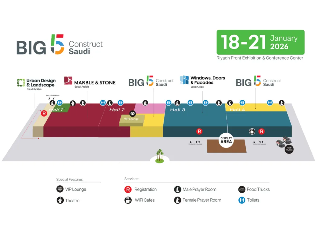 Big 5 Construct Saudi 2026 是沙特建筑与建材行业最具权威、覆盖最广的专业展会,连接全球供应链和本地项目市场,是开拓沙特及海湾地区业务的重要平台。