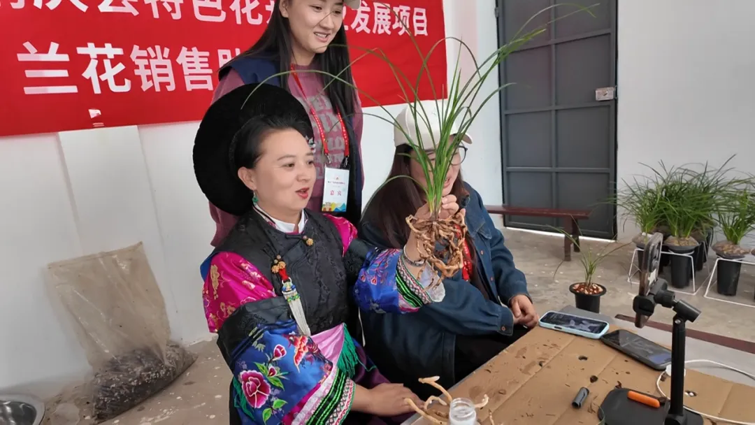 图为鹤庆兰花销售主播正在销售兰花 段志宇 摄
