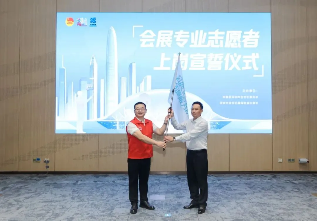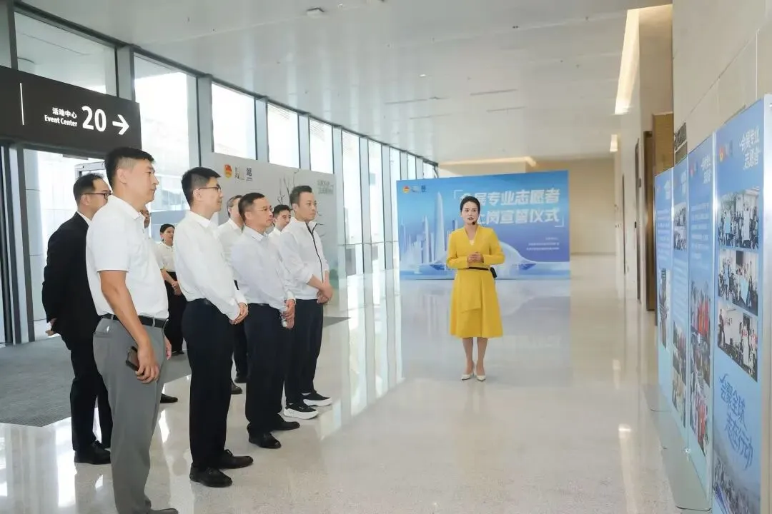 深圳市义工联合会、宝安区委社会工作部、宝安团区委、福海街道、深圳国际会展中心联合党委、深圳职业技术大学商务外语学院、深圳市招华国际会展运营有限公司等相关单位负责人共同出席成立仪式。