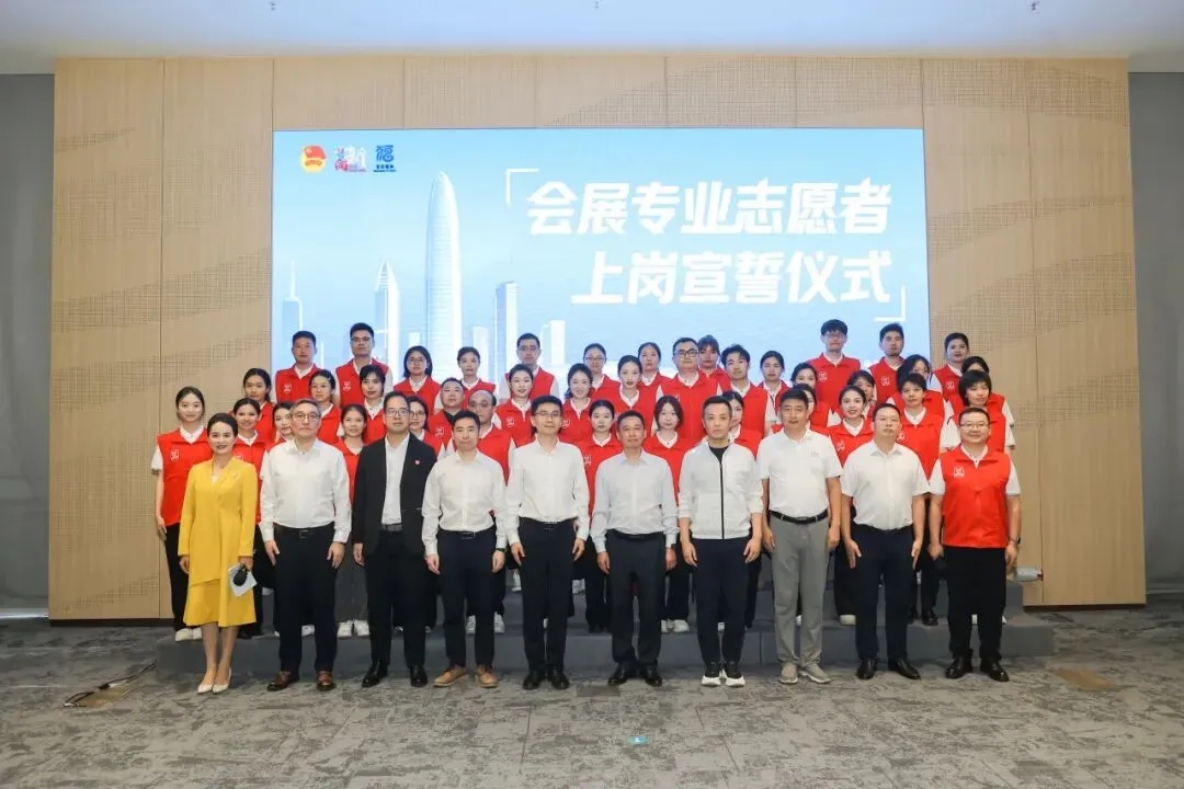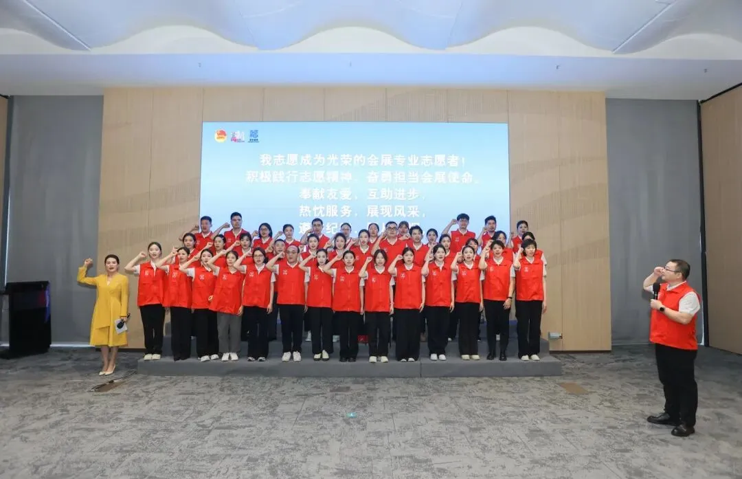 全体志愿者紧握右拳,庄严宣誓:“恪守志愿精神,践行专业服务……”,铿锵誓言传递出他们服务城市发展、助力“国际会展之都”建设的坚定信念。