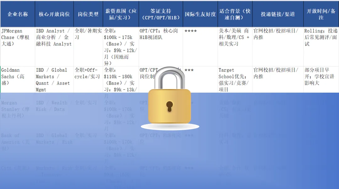 为了解决这个信息差,我们系统性整理了——《2026 美国金融行业春招企业 & 岗位 & 薪资 & 签证支持一览表》,把信息一次性摊开讲清楚。