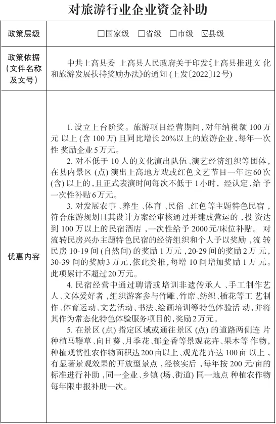 【惠企政策】资金奖补类(九)对旅游行业企业资金补助