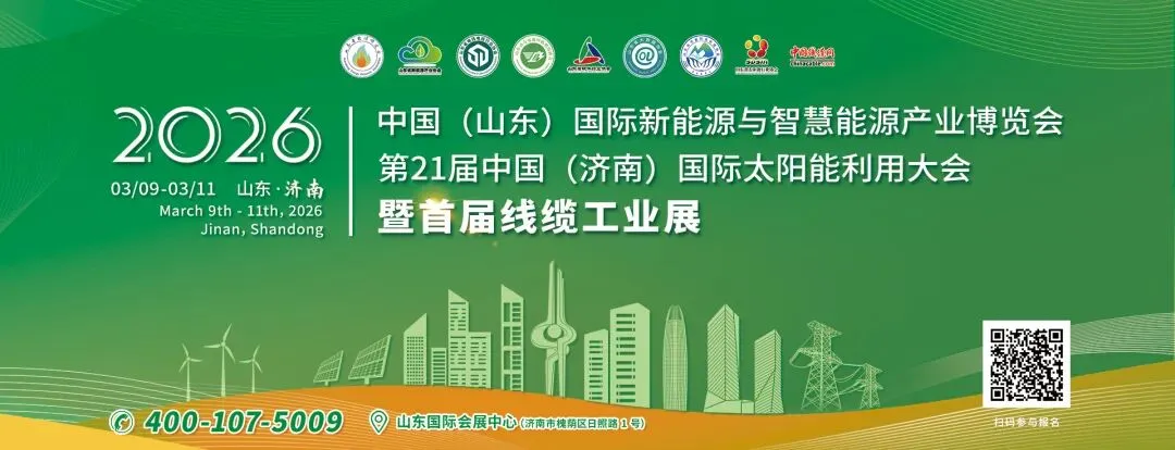 2026中国(山东)国际新能源与智慧能源产业博览会——第21届中国(济南)国际太阳能利用大会暨首届线缆工业展,将于2026年3月9日至11日在山东国际会展中心(济南市槐荫区日照路1号)举办。