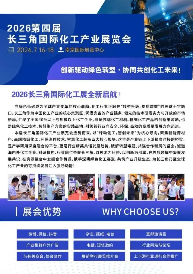 不锈钢买卖网展会推荐——2026年第四届长三角国际化工产业展览会邀请函【7月16-18日】