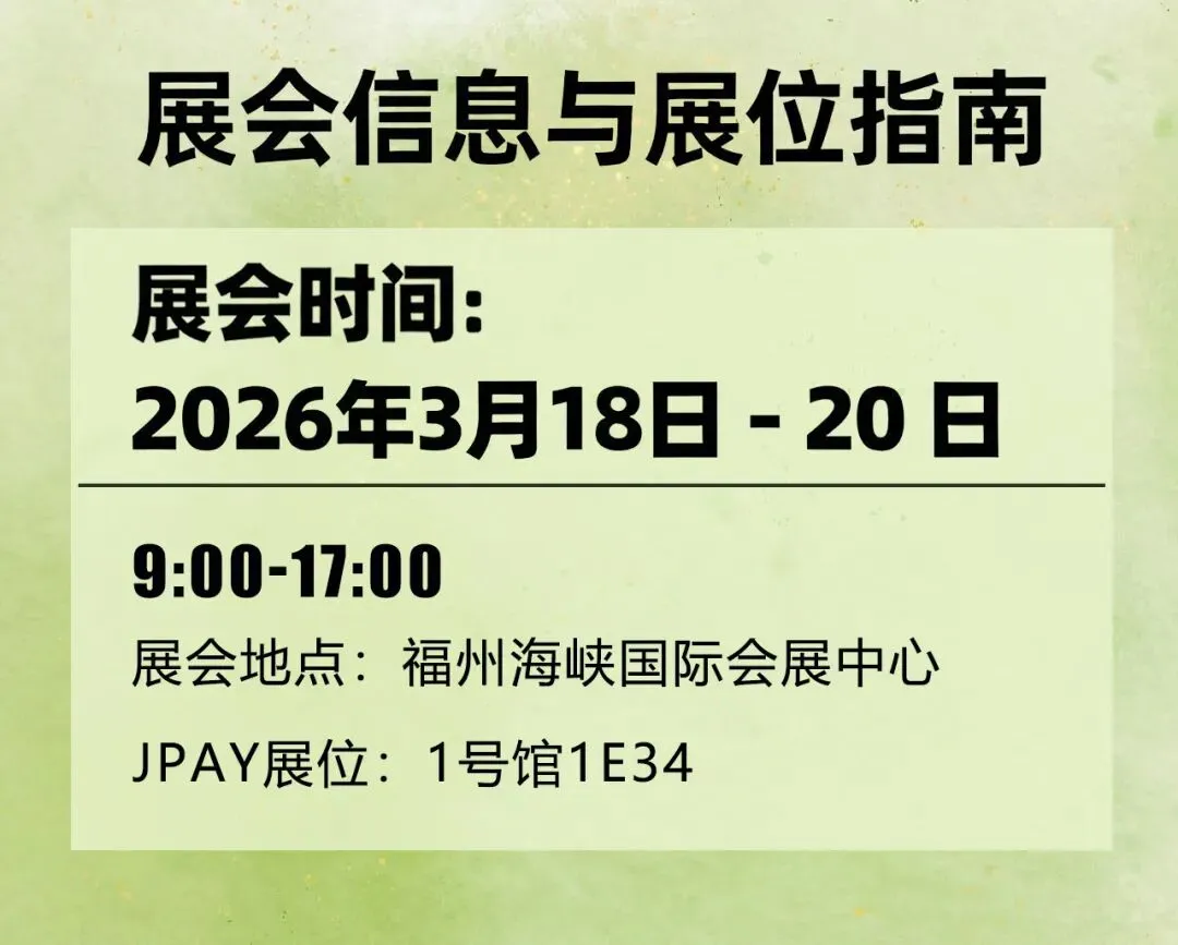 2026 年 3 月 18-20 日,J-PAY 展位【1E34】持续开放!我们已经备好满满干货、福利与诚意,只等你来:
