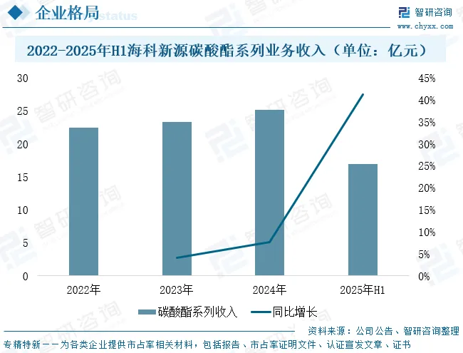海科新源作为全球锂离子电池电解液溶剂龙头,凭借领先的技术实力、完整的产品体系及多基地协同布局,持续巩固其行业领先地位。公司构建了涵盖碳酸二甲酯(DMC)、碳酸甲乙酯(EMC)、碳酸二乙酯(DEC)、碳酸乙烯酯(EC)和碳酸丙烯酯(PC)五大核心溶剂的完备产品矩阵,是国内少数可实现全系列碳酸酯溶剂与添加剂一体化供应的企业。2024年,公司电解液溶剂出货量达58.84万吨,占全国总出货量比例超过40%,是全球行业的领先者;2025年上半年,其碳酸酯系列产品实现营业收入16.88亿元,同比增长41.21%,展现出强劲增长动能。在客户覆盖方面,公司产品已成功进入国内外主流供应链,国内客户包括天赐材料、比亚迪等头部企业,海外则与中央硝子、韩国天宝、ENCHEM等知名电解液厂商建立稳定合作。为进一步拓展发展空间,公司积极布局新型添加剂、固态电解质及下一代溶剂产品,致力于为全球客户提供一站式解决方案,并在持续扩大海外业务的同时,不断强化其全球行业领导者的地位。